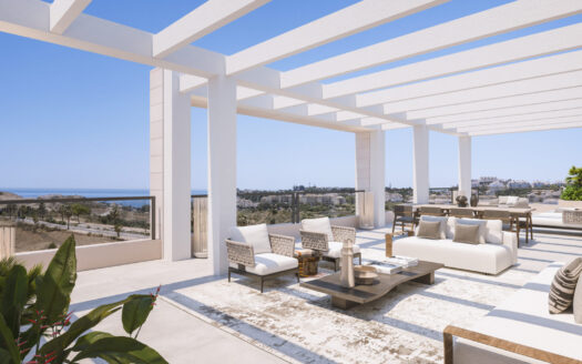 De buitenruimtes van deze residentie in Mijas zijn ontworpen om optimaal te genieten van het mediterrane klimaat. Elke woning heeft een privéterras, ideaal om buiten te ontspannen en van het uitzicht te genieten. Bovendien bevatten sommige typen een solarium, dat extra ruimte biedt voor ontspanning en recreatie. De nabijheid van de golfbaan, op slechts 0,1 km, biedt een groene en rustige omgeving, perfect voor degenen die van natuur en sport houden. De gebruikte materialen voor de buitenruimtes, zoals de tegelvloer, zorgen voor duurzaamheid en eenvoudig onderhoud, en vullen het moderne en functionele ontwerp van de woningen aan.