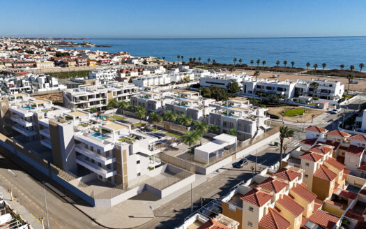 Gelegen in de charmante gemeente Pilar de la Horadada, biedt deze residentie een verscheidenheid aan woonopties die passen bij verschillende behoeften en levensstijlen. Met in totaal 53 woningen kunnen toekomstige bewoners kiezen uit appartementen, begane grond en penthouses, elk ontworpen om comfort en functionaliteit te bieden. De locatie is ideaal voor wie op zoek is naar een balans tussen rust en toegankelijkheid, op slechts 2 km van de zee, waardoor u binnen enkele minuten van de Middellandse Zeekust kunt genieten. Bovendien ligt de dichtstbijzijnde luchthaven op 44 km afstand, wat internationale reizen vergemakkelijkt. De woningen zijn uitgerust met moderne voorzieningen zoals ingebouwde kasten en pre-installatie van airconditioning, wat zorgt voor een comfortabele omgeving het hele jaar door.