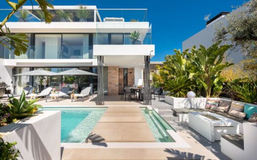 These beautiful luxury newly built villas with their own private swimming pool and lush garden, are located in a quiet residential area next to Jesús and Talamanca. The project consists of four new-build villas, designed by a renowned Ibiza architect. The four detached houses are located on a communal plot and form a small private residential complex. There is a 24/7 security service planned at the entry of the property to provide the residents with maximum security. Beach lovers will be spoiled by having the enchanting sandy beaches of Talamanca and the idyllic bay of S’Estanyol just a few minutes drive away. The famous Marina Botafoch area is also reachable in 5 minutes and home to the world’s most luxurious yachts and offering the perfect setting for strolls along the promenade. Here you find some of the island’s best restaurants and nightclubs. A short 5-minute drive takes you to Jesús, a charming town that offers all daily amenities such as restaurants, supermarkets, post office, pharmacy and more. This sought after location allows for proximity to all points of interest on the east coast of the island. With Ibiza town 7 minutes away and the airport 12 minutes away by car, you will have all amenities within easy reach, while enjoying the peace and privacy of your exclusive and luxurious retreat.